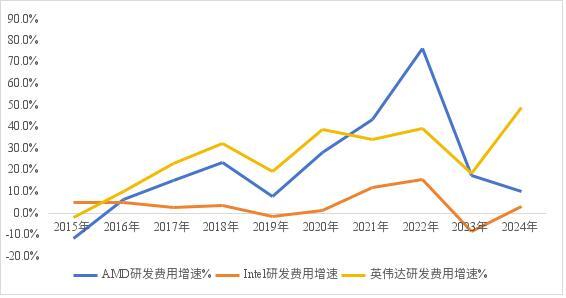 图:AMD、Intel、英伟达研发费用增速对比 数据来源:wind,36氪整理