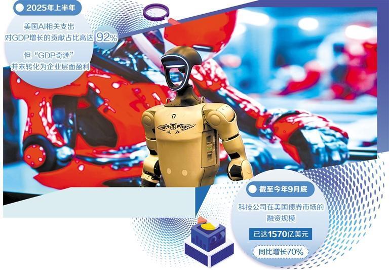 五是资金杠杆风险值得警惕。AI基础设施的巨额投资正推动互联网公司从轻资产向重资产模式转型,挤压自由现金流甚至过度依赖债务融资。截至今年9月底,科技公司在美国债券市场的融资规模已达1570亿美元,同比增长70%。进入四季度以来,这些公司针对AI基建的融资动作只增不减。债务推高了科技公司的杠杆水平,也扩大其信用风险。