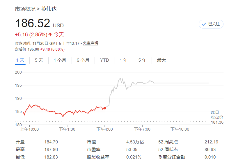 这份备受瞩目的财报发布后,市场如释重负。这家美国科技巨头给出了强劲的收入预测,并正面回击了关于AI行业正处于泡沫中的观点。受此提振,英伟达股价在盘后交易中上涨超过5%,标普500指数期货在亚洲时段上涨1.3%。