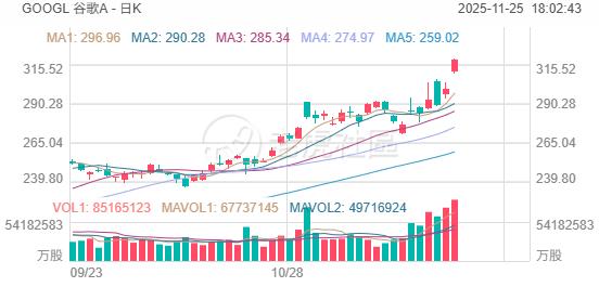 华泰证券将谷歌目标价上调至380美元,较目前还有超过18%的上涨空间,对应2026年30倍PE。