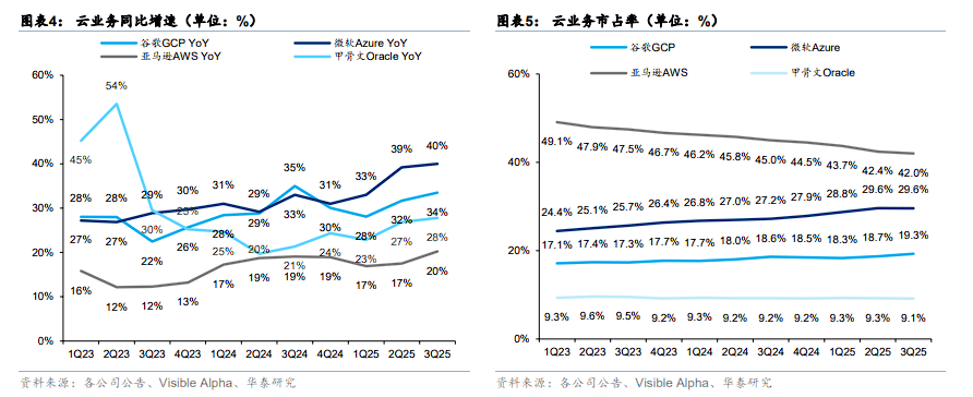 华泰证券指出,第三季度谷歌云收入达152亿美元,同比增长34%,在主要云服务商中增速仅次于Azure的40%,明显高于亚马逊AWS的20%和甲骨文的28%。云业务市场份额从上年同期的18.6%提升至19.3%。