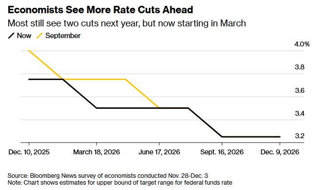 这项对41位经济学家的调查于11月28日至12月3日进行。大多数受访者表示,就业市场的显著疲软仍是政策制定者面临的主要挑战。只有18%的受访者认为更具意义的通胀是更大的风险。