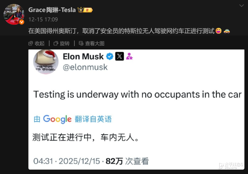 有博主在同一城市不同时间段内,发现多台完全无人状态下运行的Robotaxi。这表明测试并非单一车辆的孤立验证,而是具备一定规模和连续性的系统化测试。