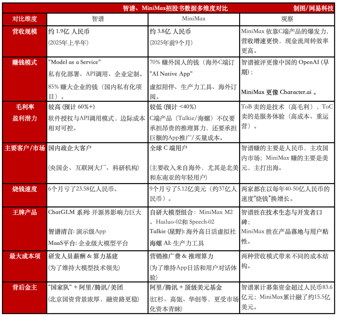 随着招股书的披露,真实的营收、亏损与现金流数据,将这两家昔日的“概念独角兽”还原为具体的商业实体。我们首次能以精确的数据颗粒度,审视中国两家头部大模型公司的真实成色。