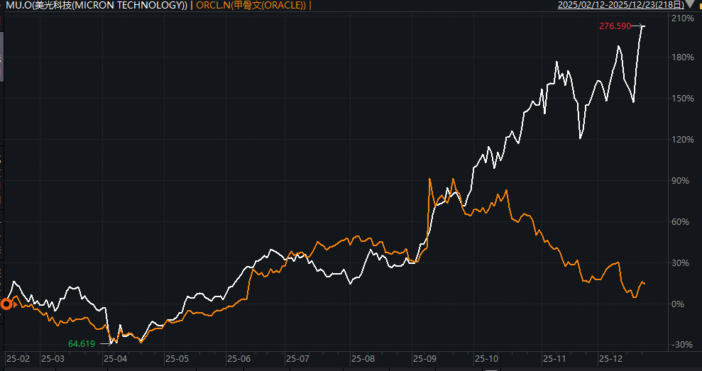 这场股价分化的直接导火索在于业绩兑现能力的差距。甲骨文与美光近期的强烈反差,本质上是AI产业链价值分配与风险错位的集中爆发。