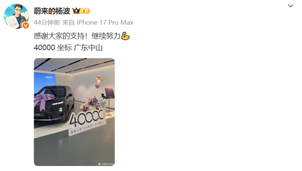 【CNMO科技消息】12月29日,蔚来用户运营负责人杨波发文宣布:全新蔚来ES8第4万台交付。这一里程碑式的成果再次彰显了蔚来在纯电汽车市场的强大竞争力。