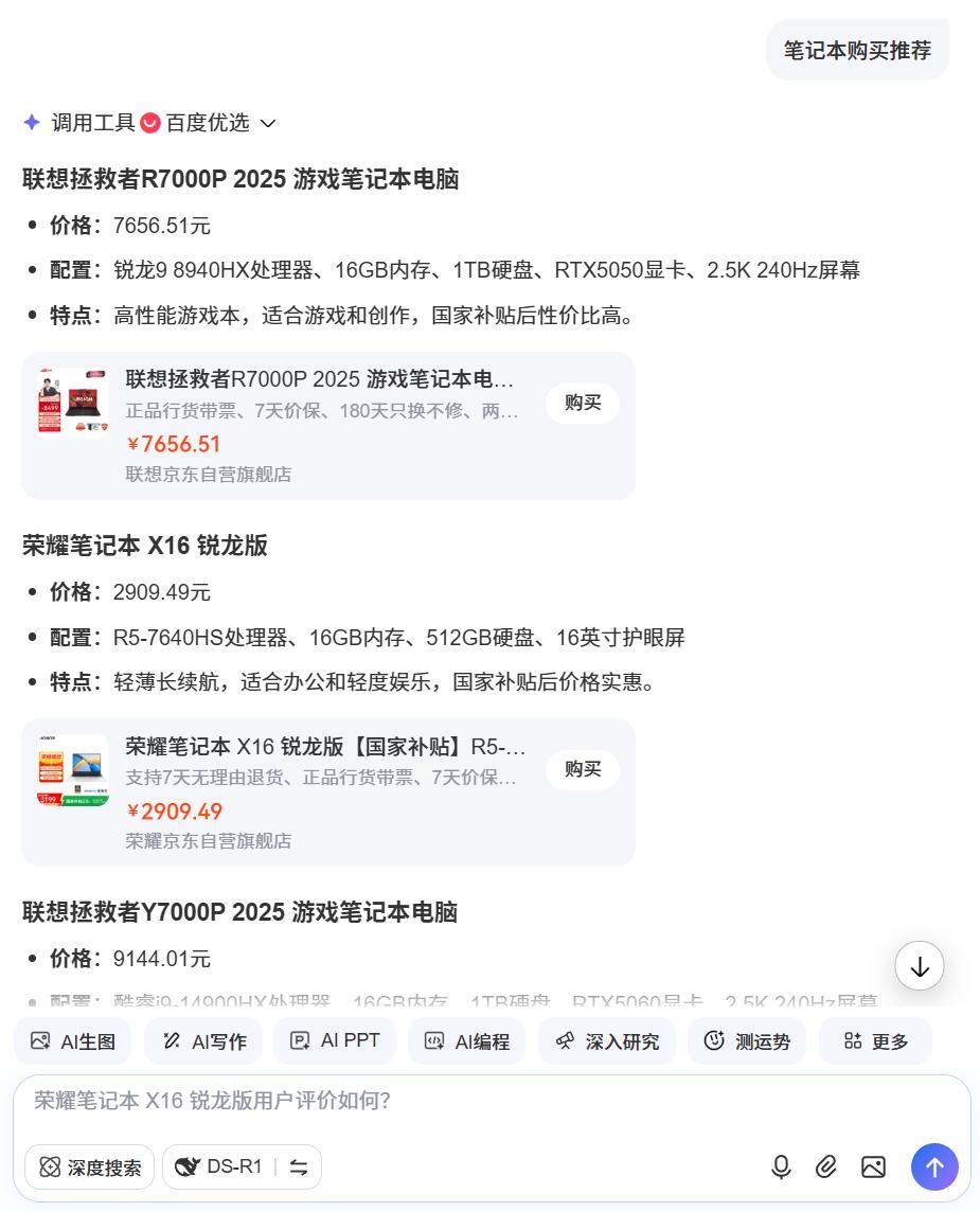 在沟通会上,百度商业产品负责人张丽红透露,目前百度AI场域内电商商品推荐的GMV涨幅“非常快”,比如用户聊到想买哪款笔记本,Chatbot可以给他推荐列表,甚至可能带上优惠信息。