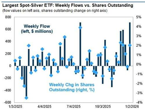 资金流向方面,高盛期货交易员Robbie Dwyer指出,周一早盘出现了明显的清算潮,全天时段抛售了4万手合约。尽管ETF在12月19日至26日期间买入了1300万盎司白银,但这并未阻止期货市场的获利回吐。Dwyer强调,虽然保证金要求的提高可能促成了抛售,但在过去一周的高波动和高价格下,基金可能已经开始削减多头头寸。