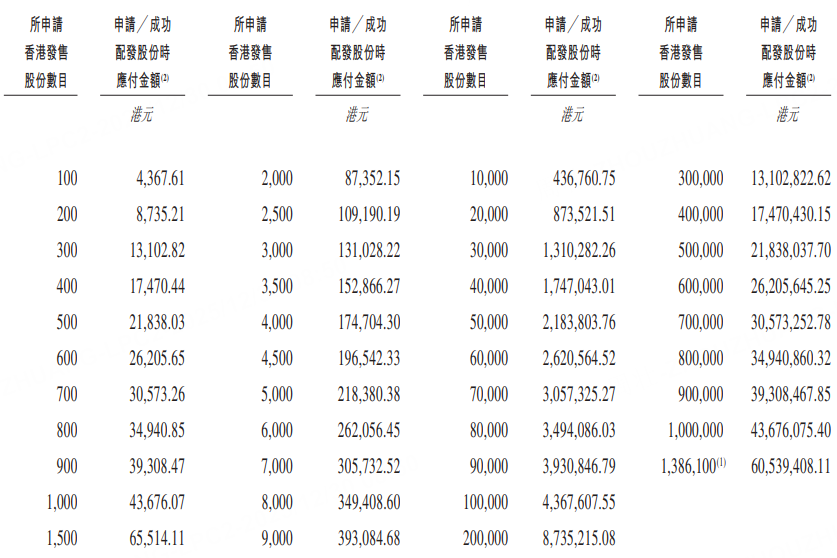 乙组门槛为20万股,申购所需资金约873.52万港元。