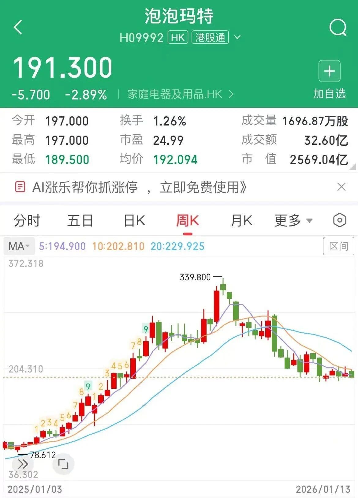 与之形成鲜明对比的是,股价与2025年8月创下的历史高点相比,下跌幅度已超40%。曾被称为尖齿小怪兽的现象级IP——LABUBU,在二手市场的价格也早已大幅回落,部分款式价格甚至出现腰斩。