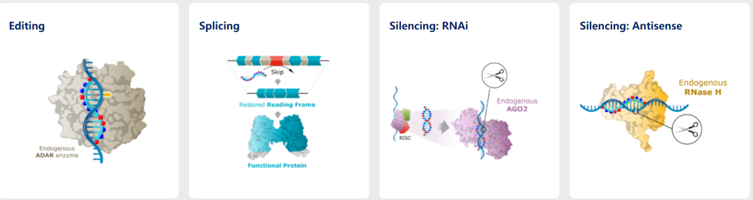 2. 新型混合模式:公司开发出能在同一寡核苷酸分子上同时实现RNA编辑和RNA沉默的新技术。这种“二合一”的分子有潜力治疗需要同时调控多个靶点的复杂疾病,代表了下一代RNA疗法的前沿。