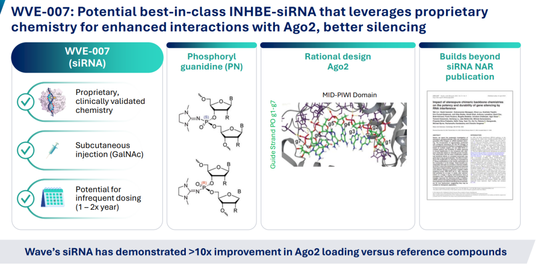 WVE-007是公司利用其SpiNA技术开发的GalNAc偶联siRNA疗法,靶向INHBE基因,旨在提供一种全新的肥胖治疗范式。
