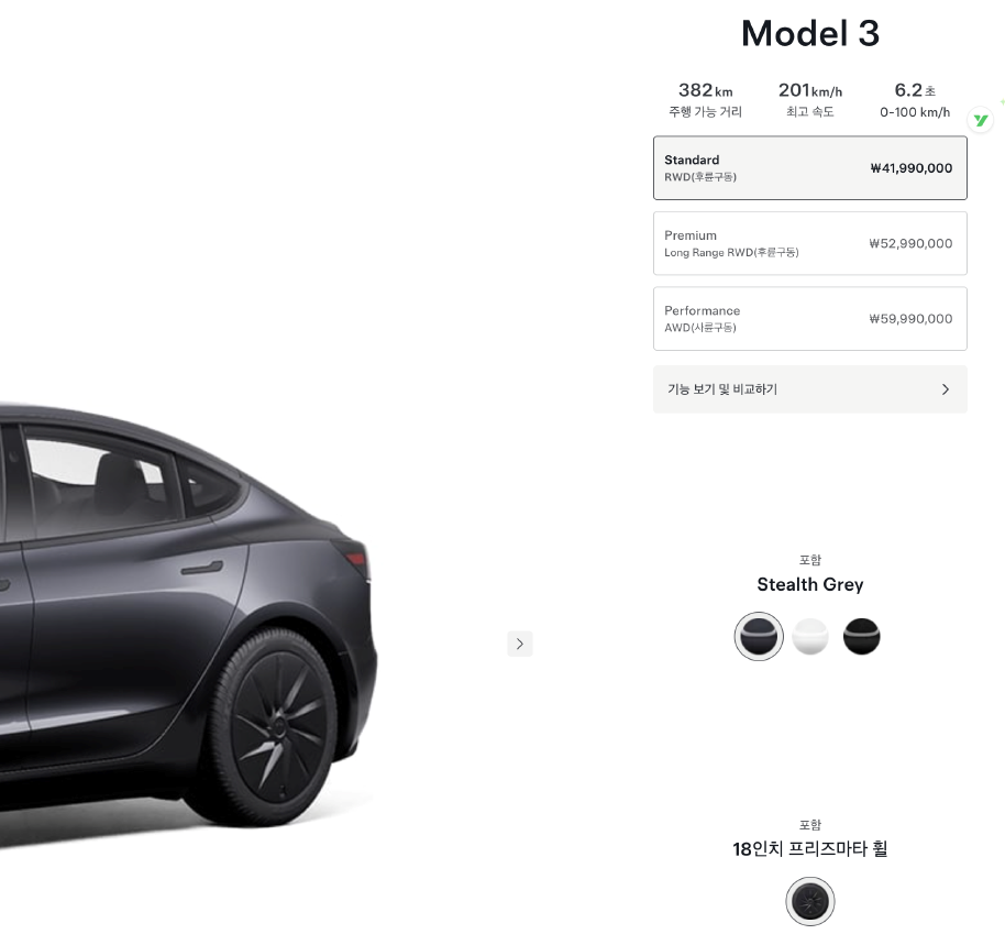 廉价版Model 3在配置上做了明显精简。这款被特斯拉官方称为“Model 3 Standard RWD”(标准后驱版)的车型,续航方面,韩国版车型续航为382公里,相比原有入门版的583公里续航减少了201公里。性能方面,百公里加速时间从5.2秒延长至6.2秒。内饰配置变化更为明显:音响系统从9个扬声器减为7个,取消后排控制屏幕,方向盘由电动调节变为手动调节。座椅材质从皮革变为织物,同时取消了氛围灯和车门储物照明灯等舒适性配置。特斯拉官方强调“安全方面绝不妥协”,主动安全配置与高配版保持一致。