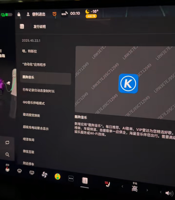这里小编就不一一放各功能介绍图片了,除上述提到外大概说一下还有行车记录仪动态录制时长、QQ 音乐伴唱模式、歌词视觉焕新、超级充电站聚合显示、喷漆车间、附近停车。