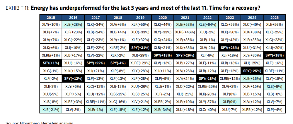 能源板块长期表现不佳,具备反向投资价值