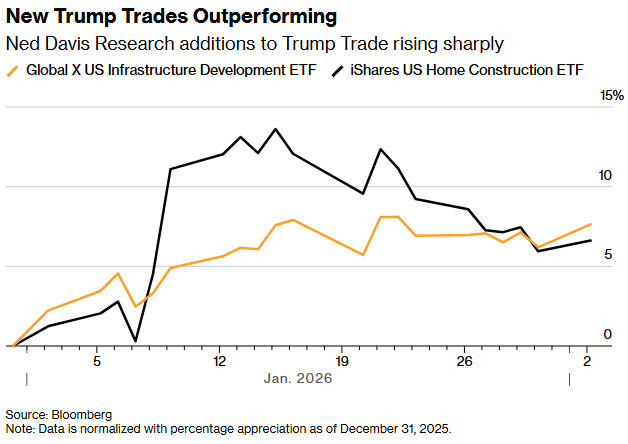 该机构已在其 2026 年“特朗普交易”中加入了住房建筑股 ETF、基础设施公司以及一只押注美元走软的基金,因为经济增长、负担能力和国家安全可能是今年的三个关键主题。