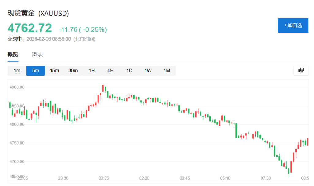 现货黄金走势类似,价格一度跌破4700美元关口,随后受买盘资金支撑反弹,较日低涨超2%。