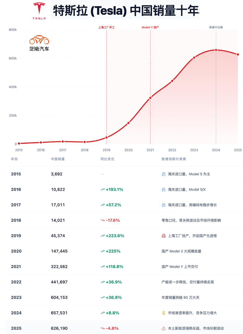 特斯拉在中国的销量,截止2025年是比较稳定的,主要是看2026年特斯拉在中国会不会有所变化。
