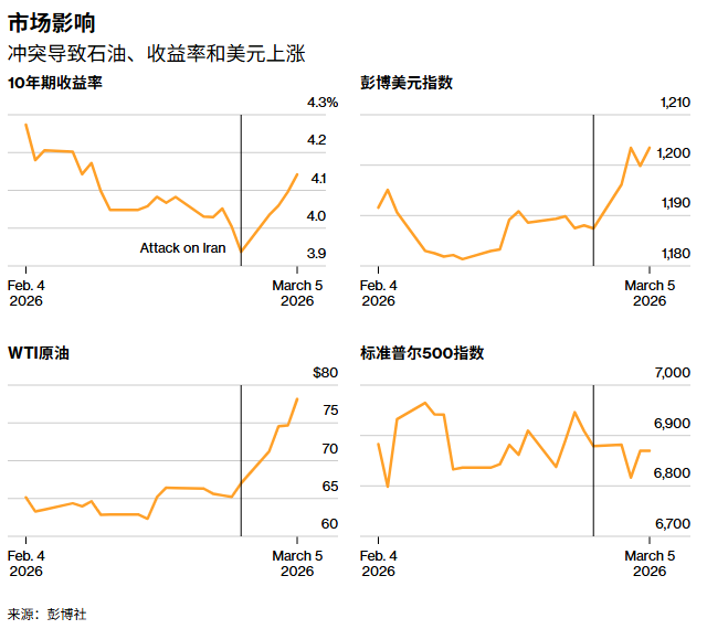 当前,交易员们将此类情景视为尾部风险,而非基准情景。周三,有报道称伊朗已间接向美国寻求谈判(德黑兰随后否认该说法),标普500指数随即上涨,美元则下跌。周四,随着战争进入第六天,油价、收益率和美元再次攀升,而股市则应声下跌。