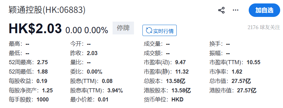 截至3月17日收盘,颖通控股仍未复牌,股价仍报2.03港元/股,总市值27.57亿港元。