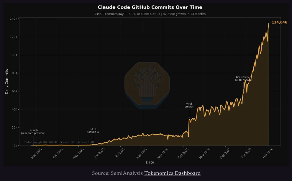 Claude Code的爆发是最显著的拐点。Anthropic的ARR在一个季度内从90亿美元暴涨至超过250亿美元,三倍于前。GLM、Kimi K2.5等开源模型的走红进一步拉动了推理工作负载的规模。