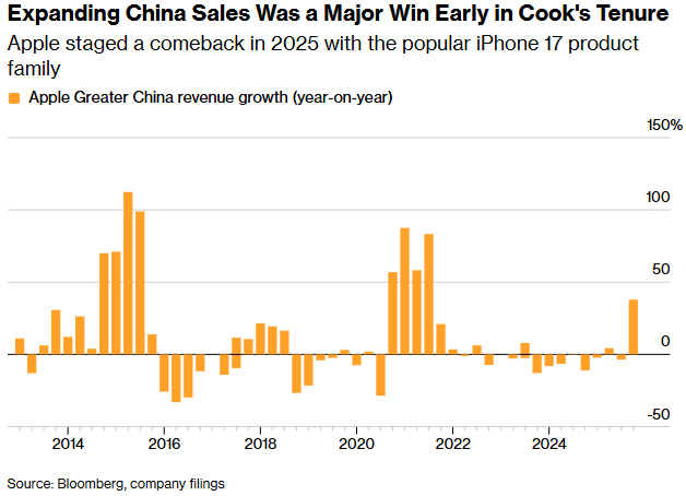 最近的假日季财报刷新了公司多项指标记录:营收、iPhone 销量以及服务业务收入。虽然库克在完全原创的产品领域并没有太多突破——Apple Car 项目已取消,Vision Pro 仍属小众——但他构建了一个极具凝聚力的生态系统,让用户不断回头。