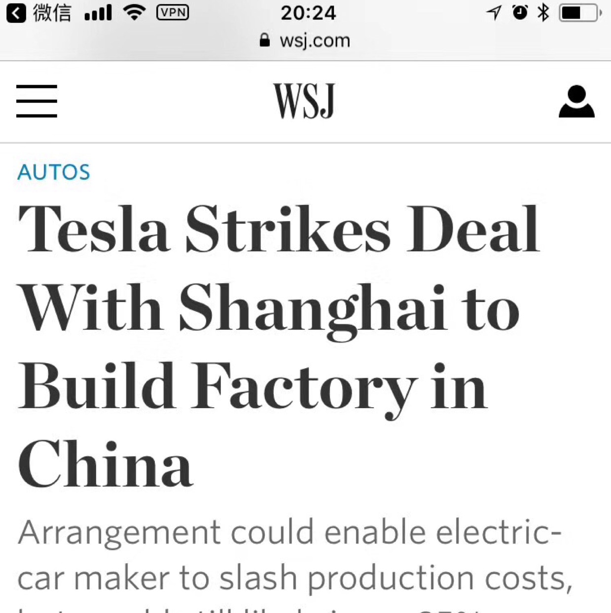 华尔街日报说特斯拉已经与上海方面达成协议落地上海建设工厂,扩大生产能力。特斯拉的国产化
