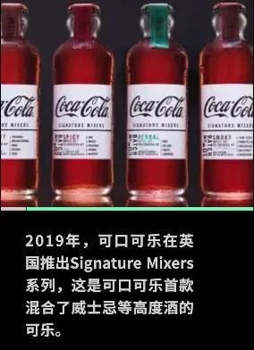 2019年,可口可乐在英国推出了Signature Mixers系列,这是可口可乐首款混合了威士忌等高度酒的可乐。