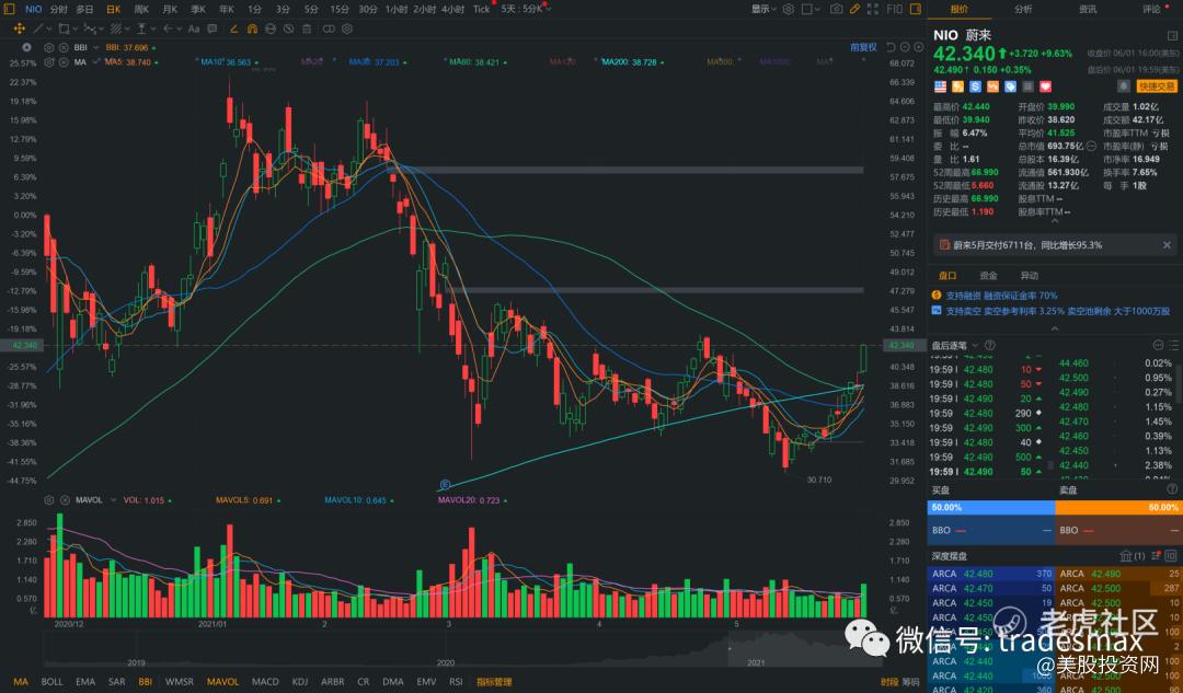 中国新能源汽车老大蔚来,美股代号NIO,今天跳空高开高走大涨10%。