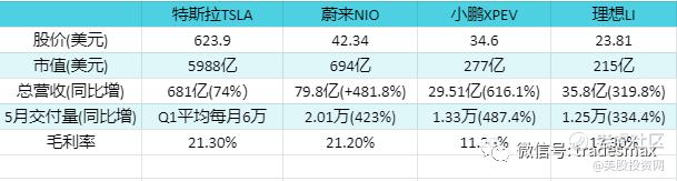 理想5月交付量为1.25万,同比大增334%。特斯拉尚未出台5月交付量。