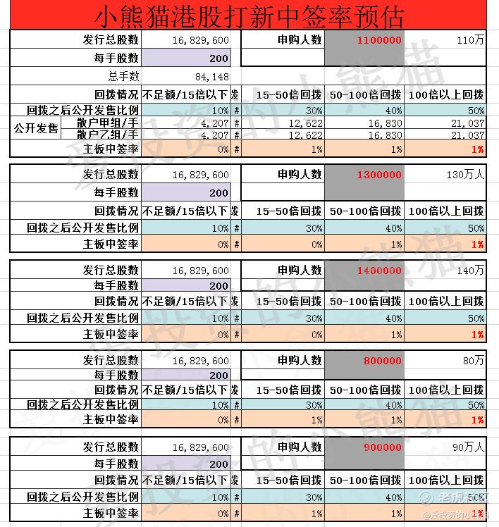 诺辉健康当时是110万人参与认购,一手中签率是2%,所以预估时代天使这次一手中签率预估也就1%左右。甲组没有稳中一手,乙组乙头肯定也不会是稳中的,这次中签率会比诺辉健康还低,甲乙组分别2.1万手的货,和诺辉3.8万手的货比起来,少了快接近一半,所以中签率砍一半也合理。