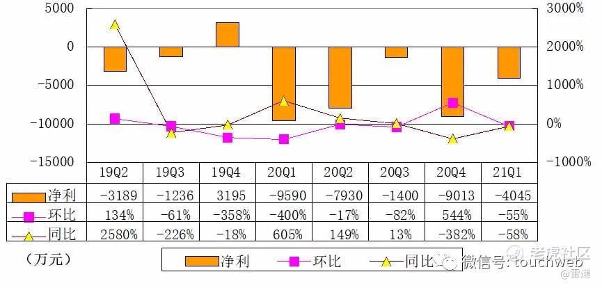 36氪2021年第一季净亏损为4045万元,较上年同期收窄58%。
