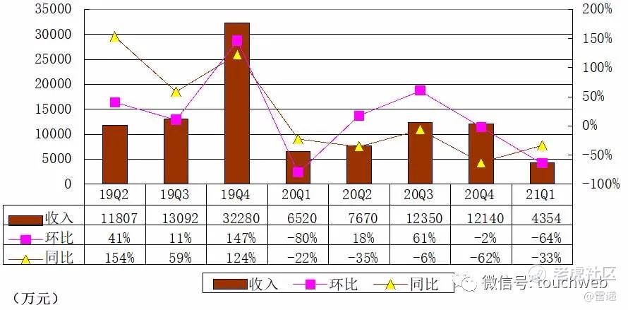 36氪今日发布了2021年第一季度财报。财报显示,2021财年第一季度,36氪收入总额为4350万元,较上年同期的6520万元下降32%。