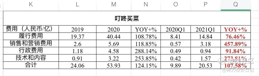 叮咚买菜2019/2020/2021Q1的营收分别为38.80亿/113.36亿/38.02亿,同比增长192.16%/46.01%,增速远胜每日优鲜,之前没有想到。