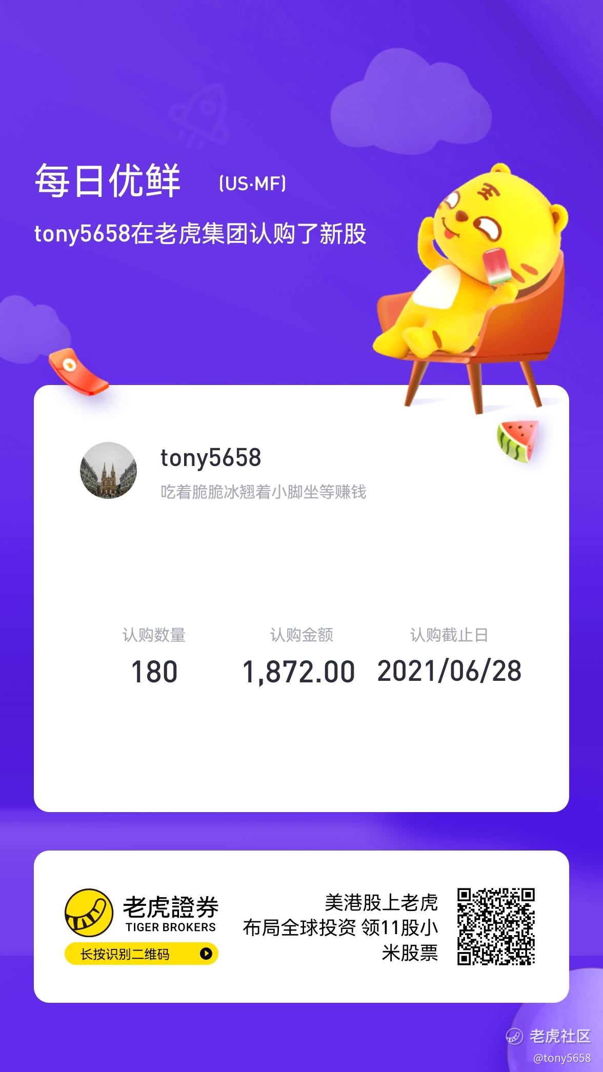 {"i18n":{"language":"zh_CN"},"data":{"magic":2,"id":123562236,"tweetId":"123562236","gmtCreate":1624430002825,"gmtModify":1624430002825,"author":{"id":3557037317388539,"idStr":"3557037317388539","authorId":3557037317388539,"authorIdStr":"3557037317388539","name":"tony5658","avatar":"https://static.tigerbbs.com/104c517f300aeca83795785ddec5bc38","vip":1,"userType":1,"introduction":"","boolIsFan":false,"boolIsHead":false,"crmLevel":1,"crmLevelSwitch":0,"individualDisplayBadges":[],"fanSize":0,"starInvestorFlag":false},"themes":[],"images":[{"img":"https://static.tigerbbs.com/ce5905545595d9e7cfae996186df7748","width":"1176","height":"2091"}],"coverImages":[{"img":"https://static.tigerbbs.com/ce5905545595d9e7cfae996186df7748","width":"1176","height":"2091"}],"extraTitle":"","html":"<html><head></head><body><p>储值下单,认购成功。</p><p><img src=\"https://static.tigerbbs.com/ce5905545595d9e7cfae996186df7748\" tg-width=\"1176\" tg-height=\"2091\"></p></body></html>","htmlText":"<html><head></head><body><p>储值下单,认购成功。</p><p><img src=\"https://static.tigerbbs.com/ce5905545595d9e7cfae996186df7748\" tg-width=\"1176\" tg-height=\"2091\"></p></body></html>","text":"储值下单,认购成功。","highlighted":1,"essential":1,"paper":1,"likeSize":0,"commentSize":0,"repostSize":0,"favoriteSize":0,"link":"https://laohu8.com/post/123562236","repostId":0,"isVote":1,"tweetType":1,"viewCount":720,"commentLimit":10,"likeStatus":false,"favoriteStatus":false,"reportStatus":false,"symbols":["MF"],"verified":2,"subType":0,"readableState":1,"langContent":"CN","currentLanguage":"CN","warmUpFlag":false,"orderFlag":false,"shareable":true,"causeOfNotShareable":"","featuresForAnalytics":[],"commentAndTweetFlag":false,"andRepostAutoSelectedFlag":false,"upFlag":false,"length":18,"xxTargetLangEnum":"ZH_CN"},"commentList":[],"hasMoreComment":false,"orderType":2}