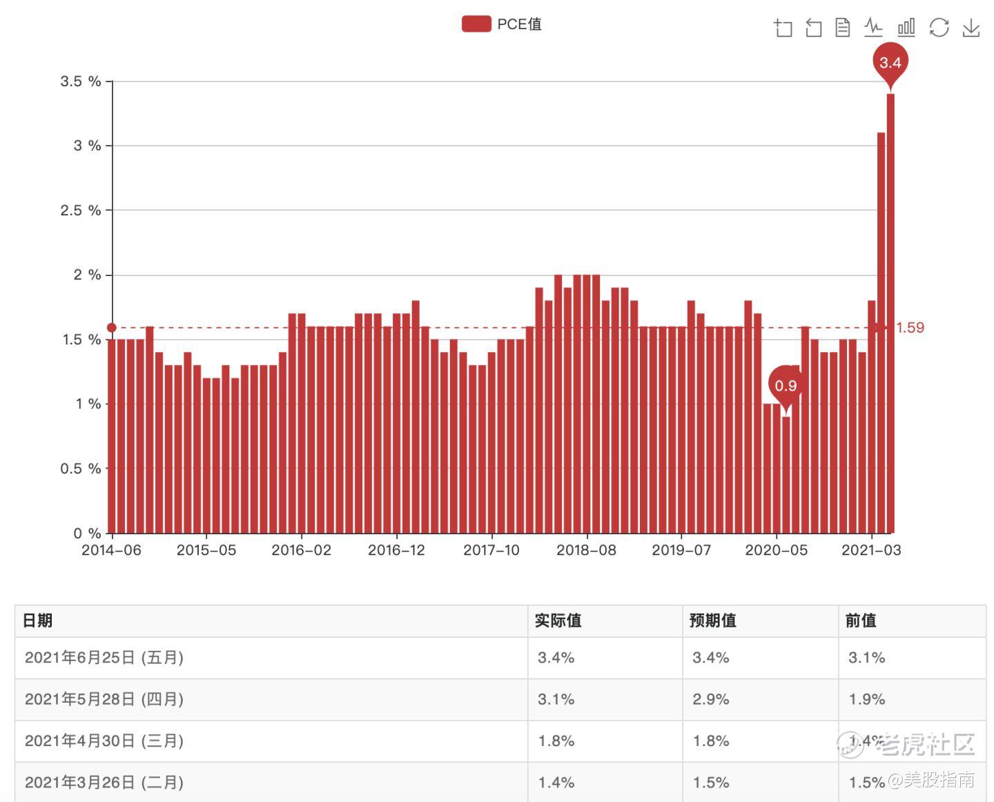 当地时间周五,美国商务部经济分析局(BEA)公布了美国5月PCE物价指数。其中核心PCE指数同比涨3.4%完全符合预期,虽然创下1992年以来的最大涨幅,但对美股市场未构成太大压力。