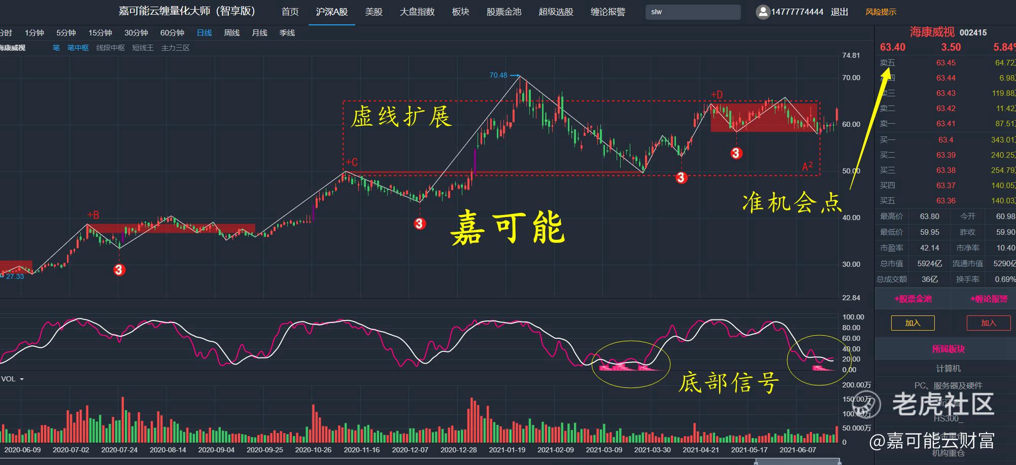 而目前从缠论大趋势上看,不仅仅是酿酒板块准备再次出现机会点,同时似乎安防的海康威视(002415)出现了缠论大机会点,如下图所示: