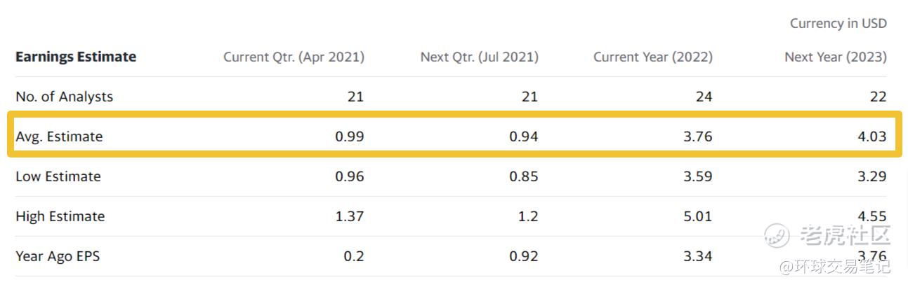 图:市场对Zoom今明两年盈利预期,来源:Yahoo财经