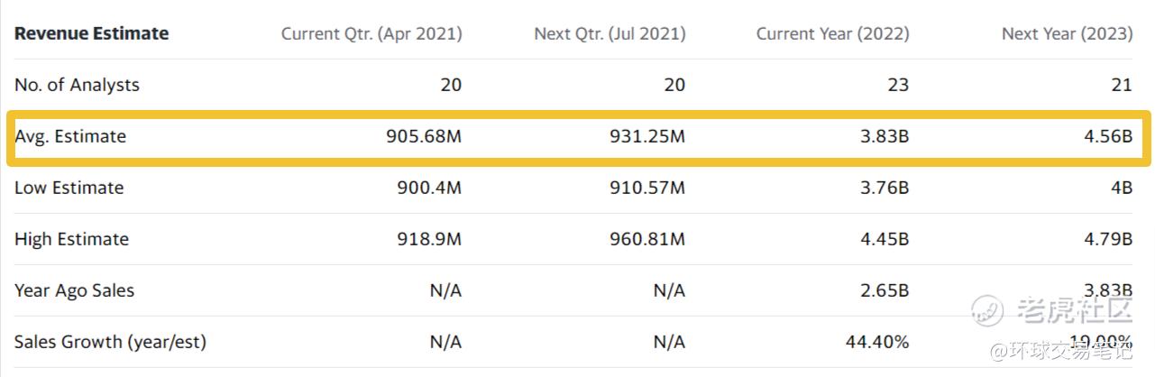 图:市场对Zoom今明两年营收预期,来源:Yahoo财经