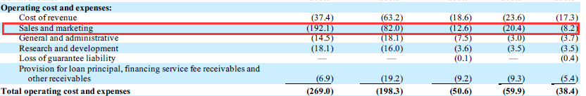 招股书中关于销售和市场支出的营销费用在2016年约为12.6%,而与支付宝达成合作之前,2014年销售和市场费用占收入的192%,2015年占82%,几乎放弃了除阿里之外的渠道(这也是上市前分析师最担心的风险因素之一),在招股说明书中,趣店的“销售和市场费用”主要包括要付给“蚂蚁金融的费用”和“品牌建设费用”,此外,还包括员工的“薪水和福利以及提成”等,这些加在一起在构成2016年营销费用的那12.6%