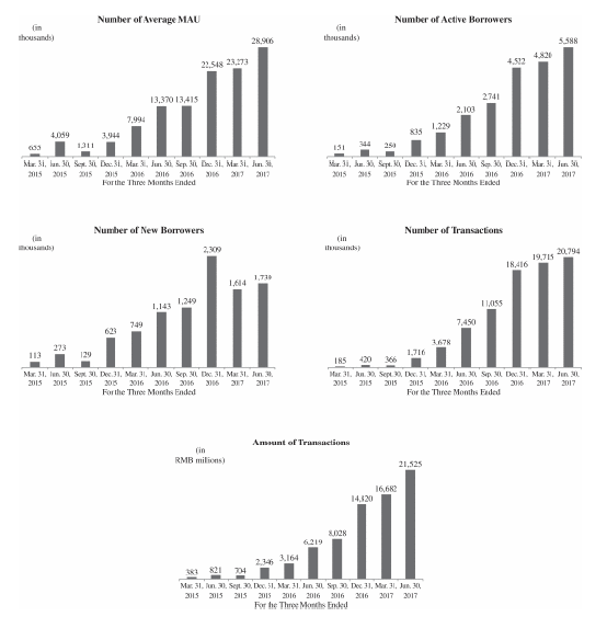 Ø 2017年上半年实现交易笔数4050万笔,2016年同期1110万笔;2017年上半年贷款额382亿元人民币,交易笔数4050万笔;