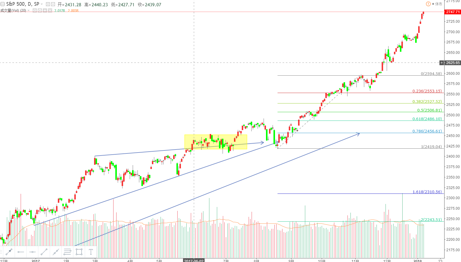 美股市场延续了2017年强劲的表现,随着投资者和资金的回归,税改落实对企业降低成本和增加盈利预期有积极的刺激,新一期的财报季临近,乐观的业绩预期提振市场风险投资偏好,市场拥有更多的资金创造投资机会,即便市场对政局负债增加有所担忧,那也是后话了,经济增长预期始终比较乐观,就业市场的稳定支撑美股上行,全球投资机构资金流入美股市场,抵消了部分板块估值偏高的忧虑。