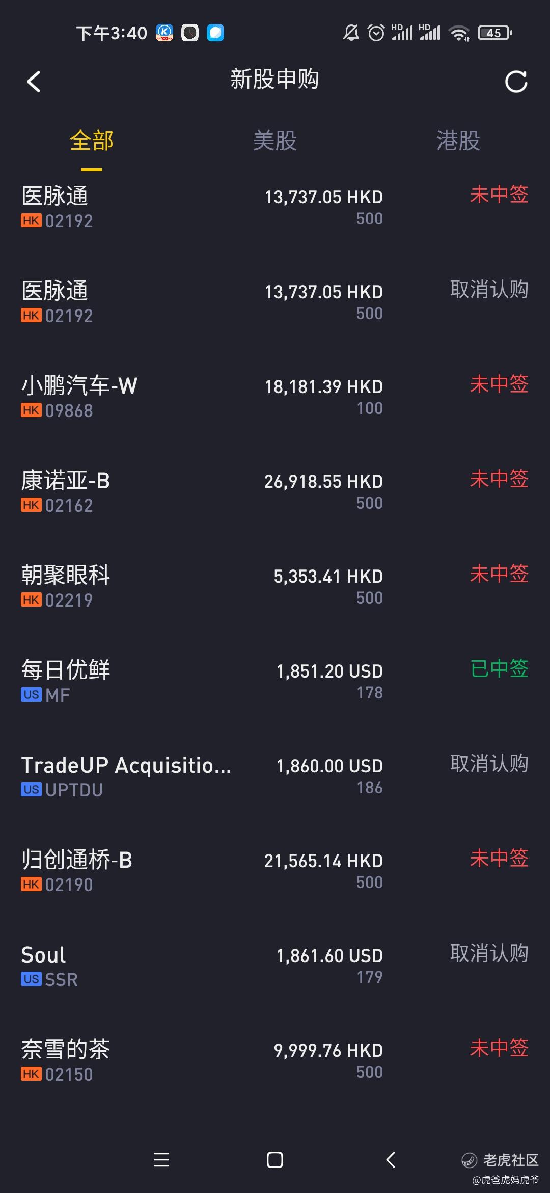 最近打了10几只新股,中了两只破发的,其他的手续费融资利息亏了1000-1500港币。这个打新真是一个坑。资金占的时间又久,真不如A股