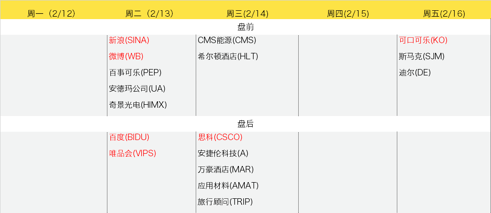 周二:百度$(BIDU)$、新浪$(SINA)$、微博$(WB)$、百事可乐$(PEP)$