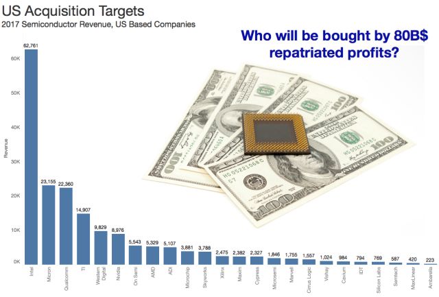 一些分析认购,这么大的现金会致使2018年发生一些大型的半导体行业并购案,当然此前$博通(BCOM)$和$高通(QCOM)$还没达成。