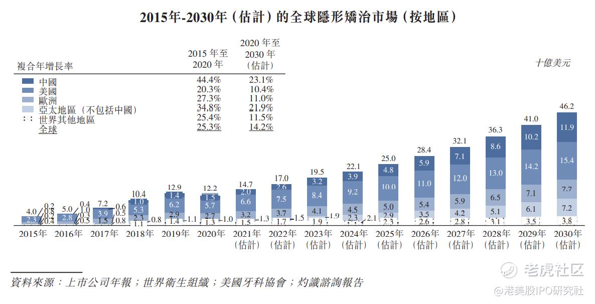 中国隐形矫治市场在2019年成为世界第二大市场。 就零售销售收入而言,市场规模由2015年的2亿美元增至2020年的15亿美元,复合年增长率为44.4%,并有望于2030年达到119亿美元,自2020年至2030年的复合年增长率预计为23.1%, 此外,中国通过隐形矫治器解决的正畸案例数目由2015年的47,800例增至2020年的335,500例,复合年增长率为47.7%,并预期将于2030年达到3.8百万例,复合年增长率为27.6%