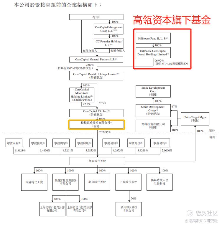 松柏正畸持有时代天使67.12%的股权,而松柏正畸正是高瓴资本(Hillhouse Capital Group)下的投资公司,*所以高领拥有时代天使96.97%67.7896%=65.7355%的股份