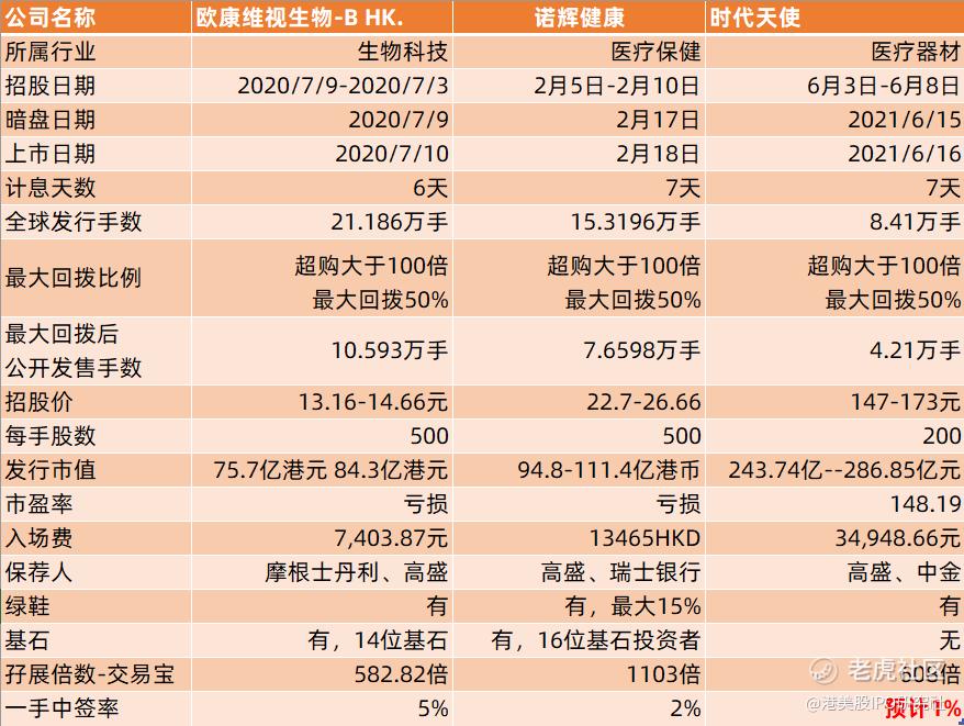 公司名称 时代天使 所属行业 医疗器材 招股日期 6月3日-6月8日 暗盘日期 2021/6/15 上市日期 2021/6/16 计息天数 7天 全球发行手数 8.41万手 最大回拨比例 超购大于100倍 最大回拨50% 最大回拨后公开发售手数 4.21万手 招股价 147-173元 每手股数 200 发行市值 243.74亿--286.85亿元 市盈率 148.19 入场费 34,948.66元 保荐人 高盛、中金 绿鞋 有 基石 无 孖展倍数-交易宝 608倍