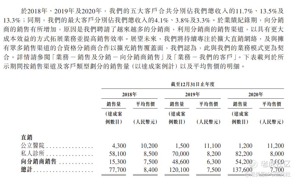 于2018年、2019年及2020年,时代天使的五大客户合共分别占我们总收入的11.7%、13.5%及13.3%;同期,时代天使的最大客户分别占总收入的4.1%、3.8%及3.3%。总体看起来客户不是很集中,销量不受大客户影响,比较稳定
