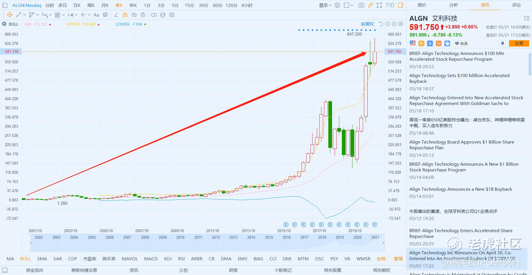 时代天使这个票从各角度讲都非常好,从与其对标的企业美国的艾利科技(NASDAQ:ALGN)(产品是“隐适美”),来看,时代天使是个很好的可以长期持有的票
